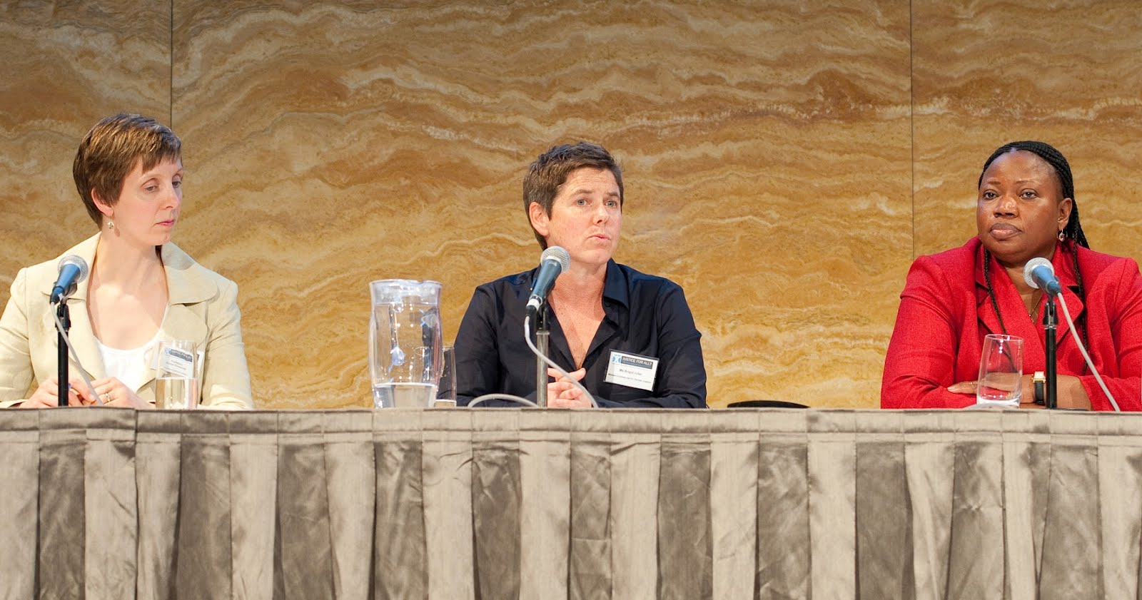 ► IntLawGrrl contributor Brigid Inder, Executive Director of the Women’s Initiatives for Gender Justice. (photo by Michael Anderson of conference panel featuring, from right, Bensouda, Inder, and yours truly, Valerie Oosterveld, courtesy of UNSW)