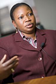 ► Panel on the Special Court for Sierra Leone, featuring; Scheffer; Stephen J. Rapp, currently the U.S. Ambassador-at-Large of the State Department's Office of Global Criminal Justice and formerly the Special Court's Chief Prosecutor, Binta Mansaray (left), Registrar of the Special Court; Professor Bankole Thompson of Eastern Kentucky University, formerly a Judge at the Special Court; and Raymond M. Brown of the International Justice Project, formerly a Co-Lead Defense Counsel before the Special Court. Moderating will be Professor William Schabas of Middlesex University, London, and Leiden Law School, The Hague, and formerly a member of the Sierra Leone Truth and Reconciliation Commission.