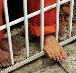 persists in its prosecution of alleged child soldiers. Among them, as we've posted, is Toronto-born Omar Khadr, was 15 years old when captured in Afghanistan. He's spent his adolescence at the U.S. military base at Guantánamo Bay, Cuba, under conditions of detention and interrogation (above; credit) that his lawyers say have harmed his mental health. The situation has been condemned by Canada's Supreme Court, and lawyers have demanded Khadr's repatriation. Although plans to start a trial by military commission yesterday have been scrapped, U.S. efforts to prosecute Khadr -- on charges of murder, attempted murder, conspiracy, material support for terrorism -- continue. In similar predicament is another detainee, Mohammed Jawad, 16 when captured; see Jamil Dakwar 's ACLU Blog post here.